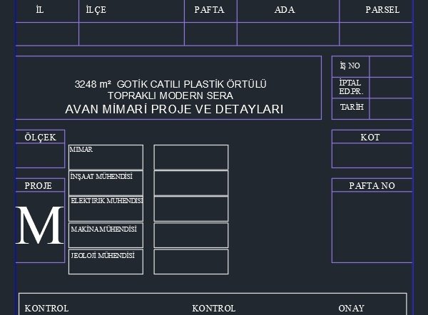 Fide Üretim Serası Mimari Projesi detayları, Teknik Şartnamesi, Kullanılacak malzeme ve özellikleri içermektedir.
